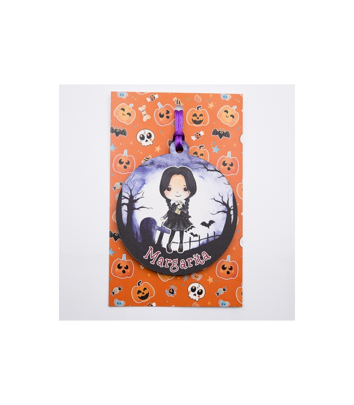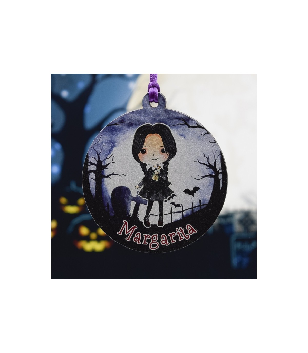 Adorno de Halloween personalizado madera impresa niña Miércoles Addams