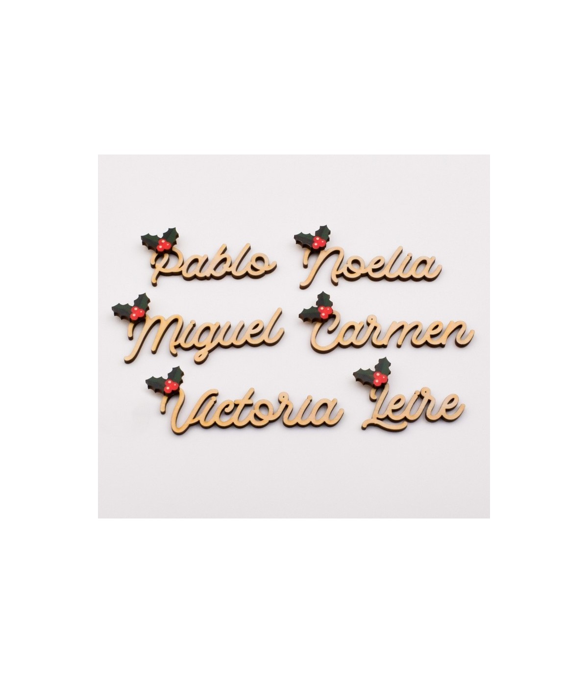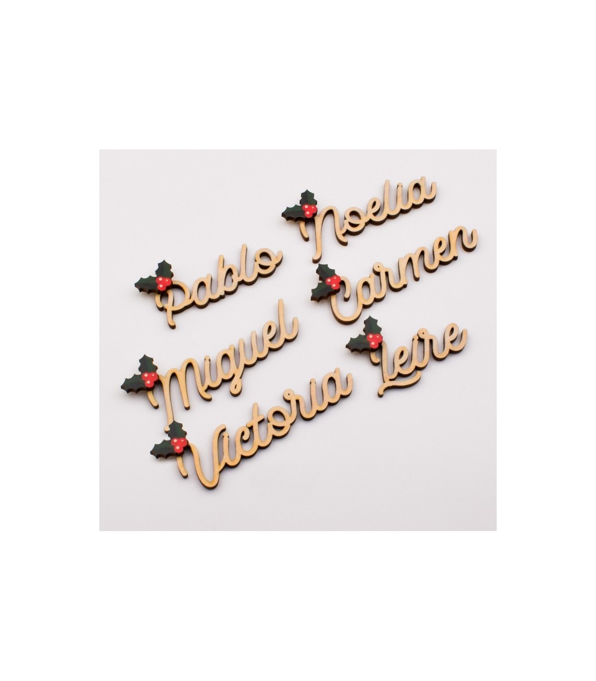 Personaliza tu mesa esta Navidad con este adorno de madera en forma de muérdago, diseñado como marcasitios. Graba el nombre de cada invitado y crea una decoración única y cálida para tus cenas y celebraciones.